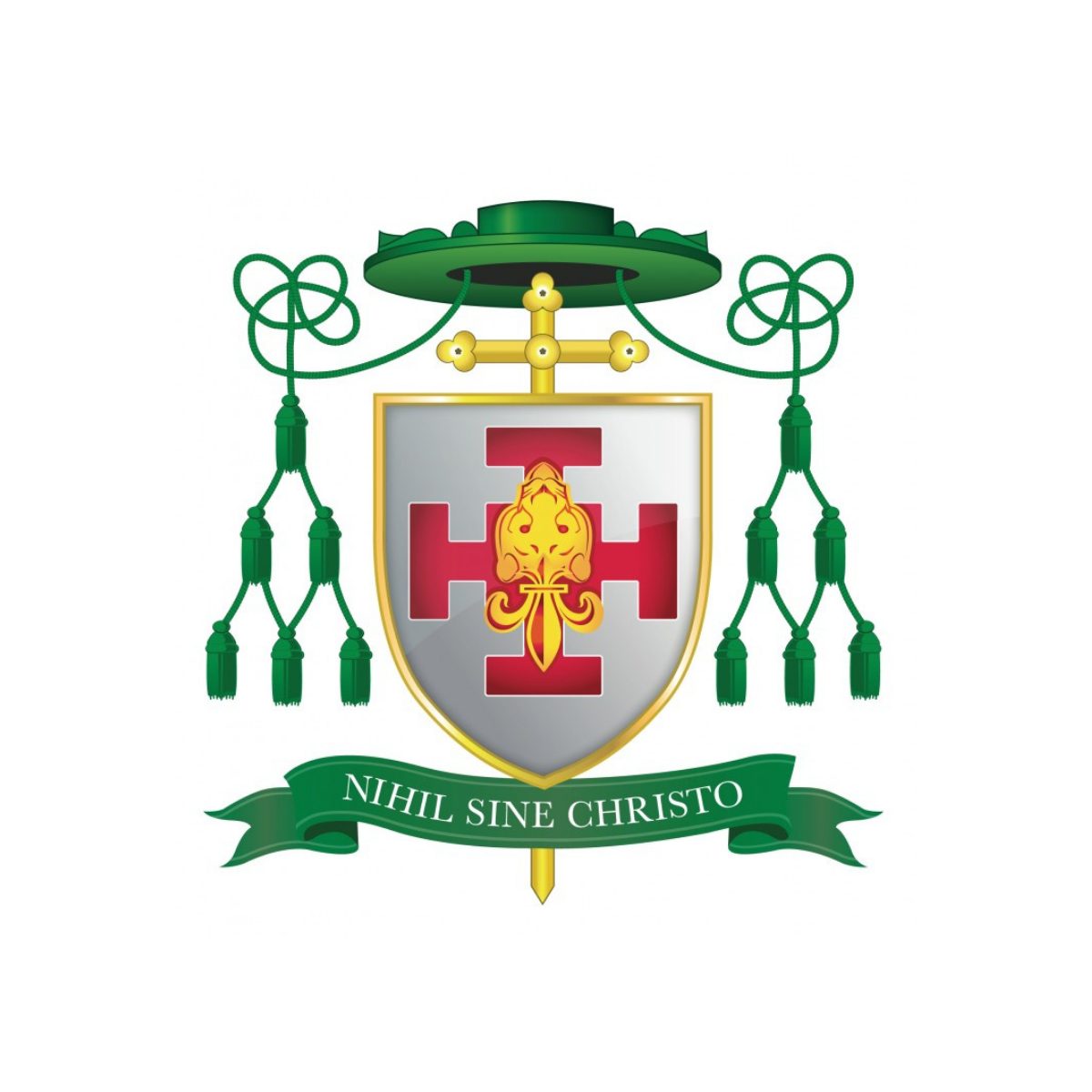 | | Shrewsbury, Every Bishop of Shrewsbury has had the same coat of arms: An inverted leopard's head with a fleur de lys from St Thomas Cantilupe, superimposed over the red cross of St Chad, mounted on a sword and shield. Green hat and tassels of a bishop. [5] Motto: Nihil Sine Christo Nothing Without Christ [6] |