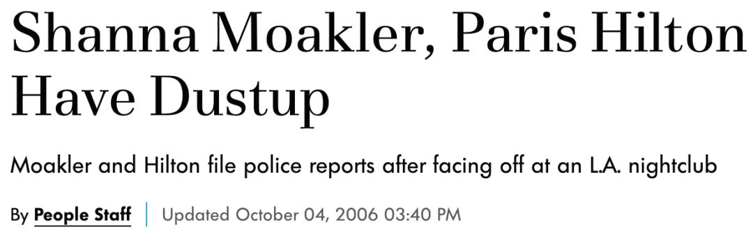▲ 比如跟帕丽斯·希尔顿因为Travis闹上了警察局,起因是 Shanna不满Paris跟老公传绯闻,而Paris则称她在夜店被 Shanna推下了楼……顺便一提,Paris11月就要举行婚礼了( 恋情点这里回顾 ),相信届时会相当热闹!