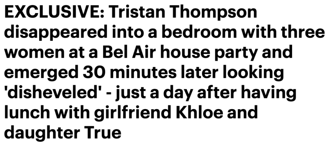 ▲ 就在被拍到和 Khloé还有女儿True吃饭的隔天,他被爆料在派对里带着三个姑娘进了房间,消失三十分钟后“衣冠不整”出现,发生了什么,留给大众想象空间。
