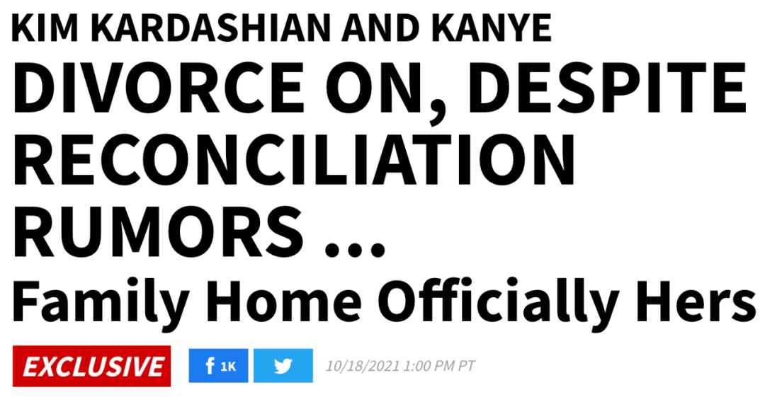 ▲ 10月18日新闻爆出之前双方共同拥有、由Kanye亲自参与设计的豪宅,已经确认归了Kim。