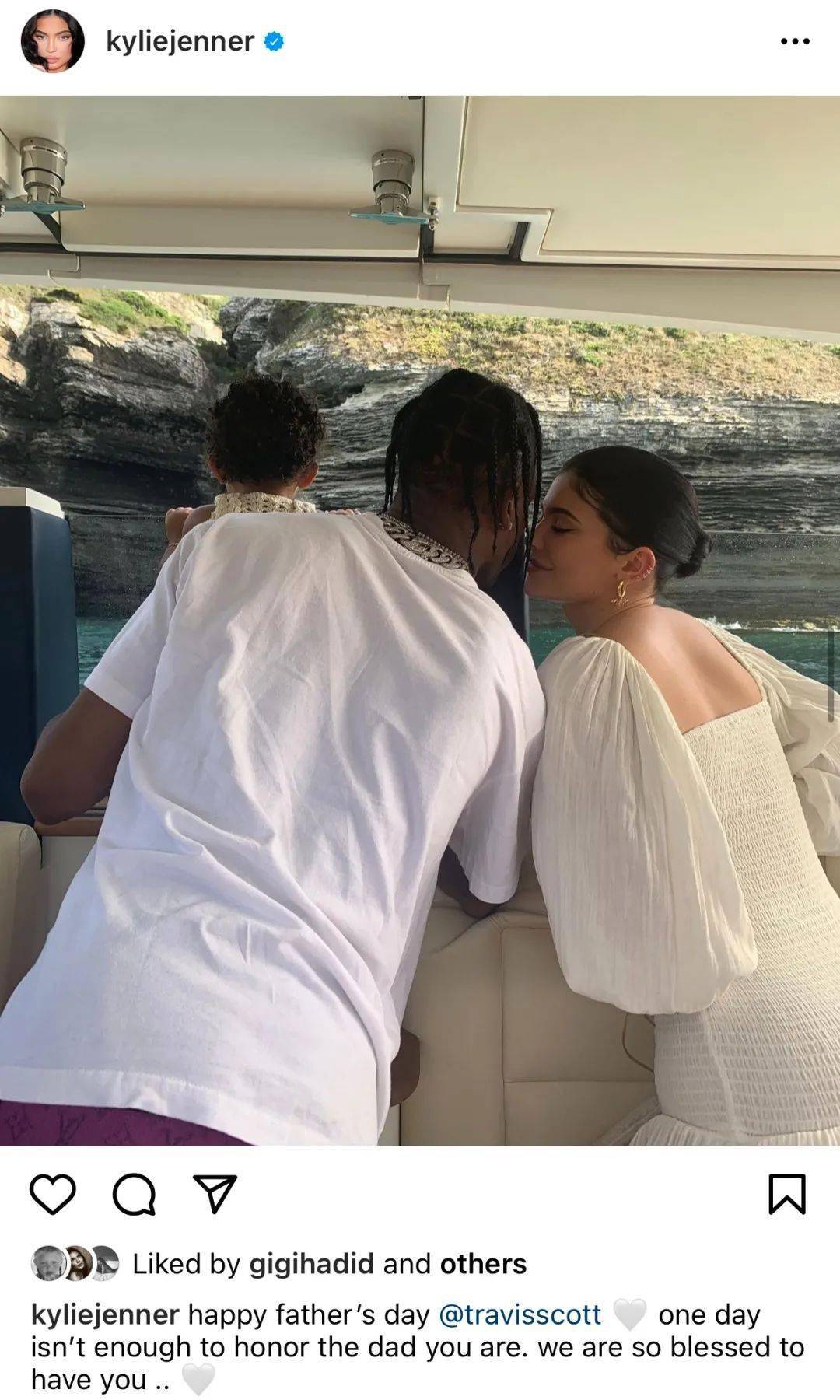 ▲ 今年6月的纽约慈善活动,两人带着孩子一起走红毯。事后,Kylie在ins发布了和Travis的合照,明示复合。