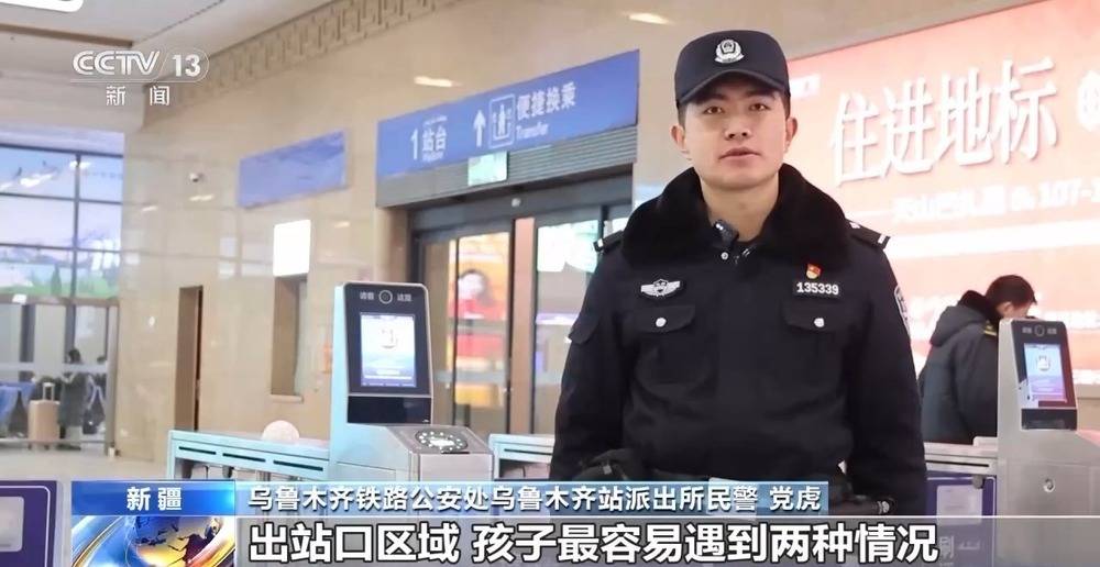 乌鲁木齐铁路公安处乌鲁木齐站派出所民警党虎提示出站口区域,孩子最容易遇到两种情况: