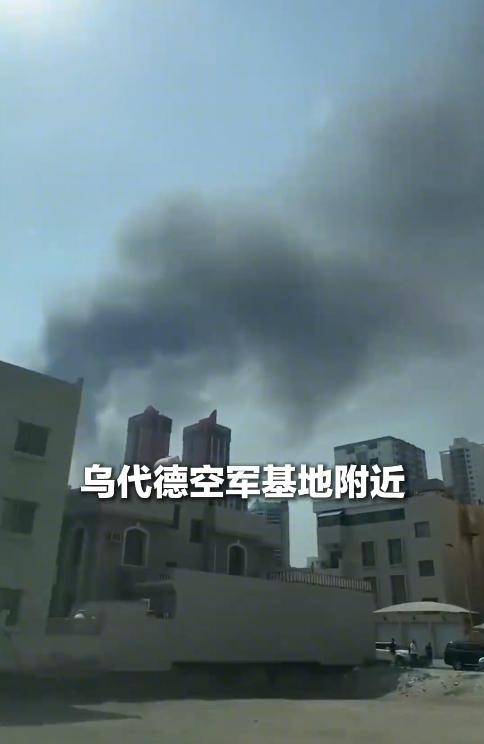 美国海军第五舰队驻巴林基地被击中后,直接陷入紧急状态,现场浓烟滚滚。