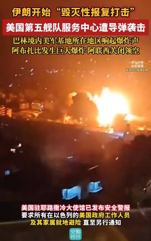 伊朗军方直接瞄准美国在中东的军事基地,卡塔尔、巴林等四处美军基地均遭导弹袭击。