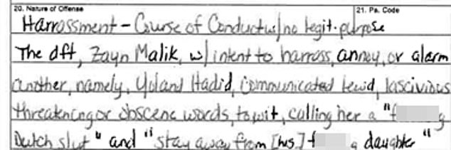 9月底,Yolanda在Gigi不在家的时候去了Gigi和Zayn的家,在家的Zayn看到Yolanda极其不爽,两人发生了口角。Zayn动手推了Yolanda,Yolanda报了警。Zayn被判四项骚扰罪名,Zayn“不抗辩”(不认罪,但也没说自己无罪)。Zayn要付罚款和360天的缓期。