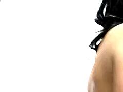 Dark haired white sweetie rides massive cock of her black stud with passion