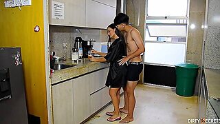 An unexpected surprise for the stepmother in a satin robe