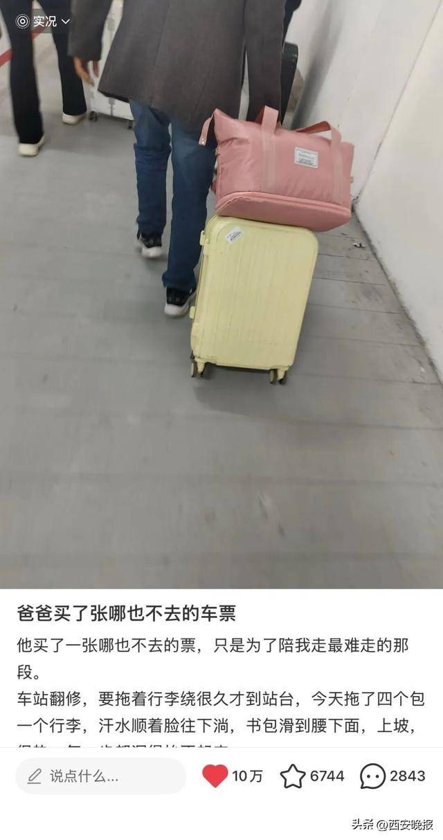 “父亲买了张哪儿也不去的车票,只是为了陪我走难走的那段路。”3月1日,四川的范同学发在社交平台的这篇帖子引发诸多网友共鸣。截至目前,相关内容点赞量已突破10万,无数网友被这份沉默又厚重的父爱深深打动。