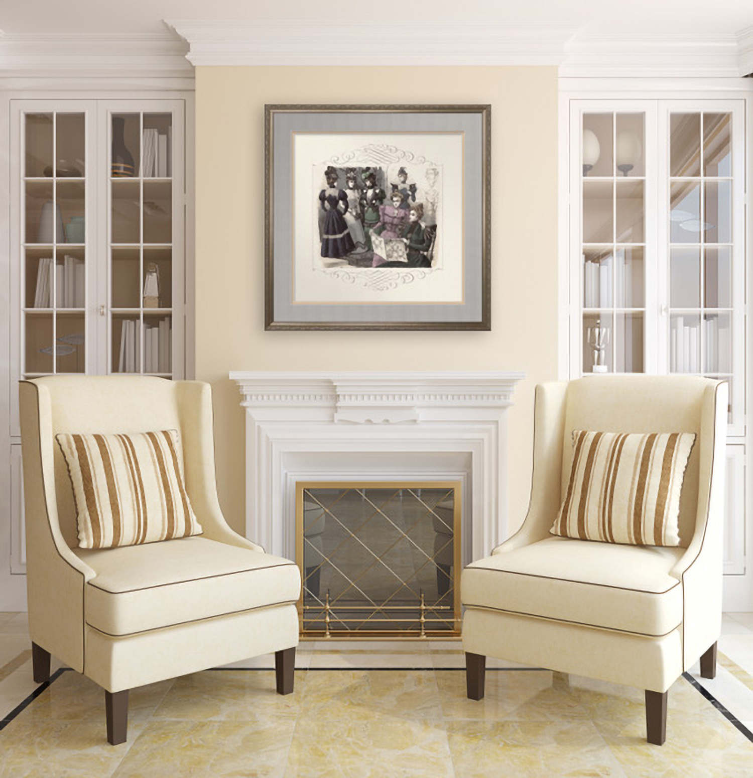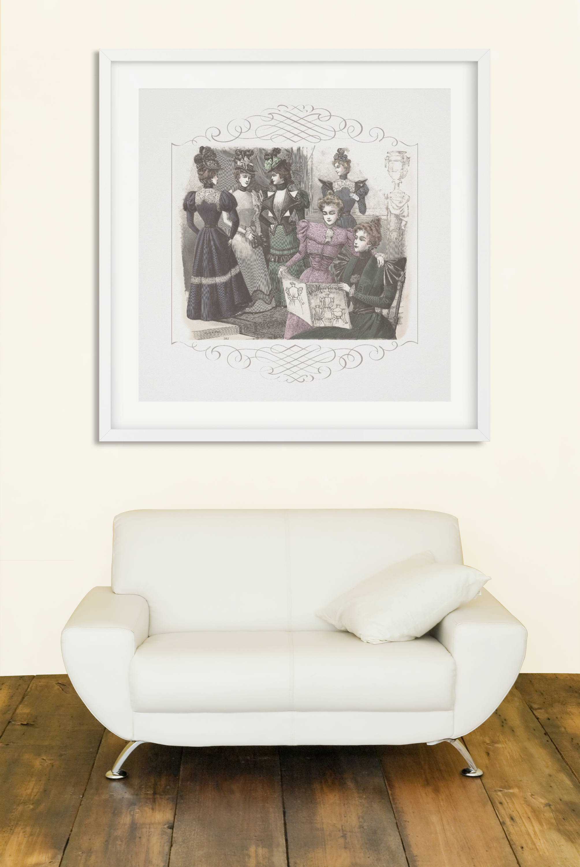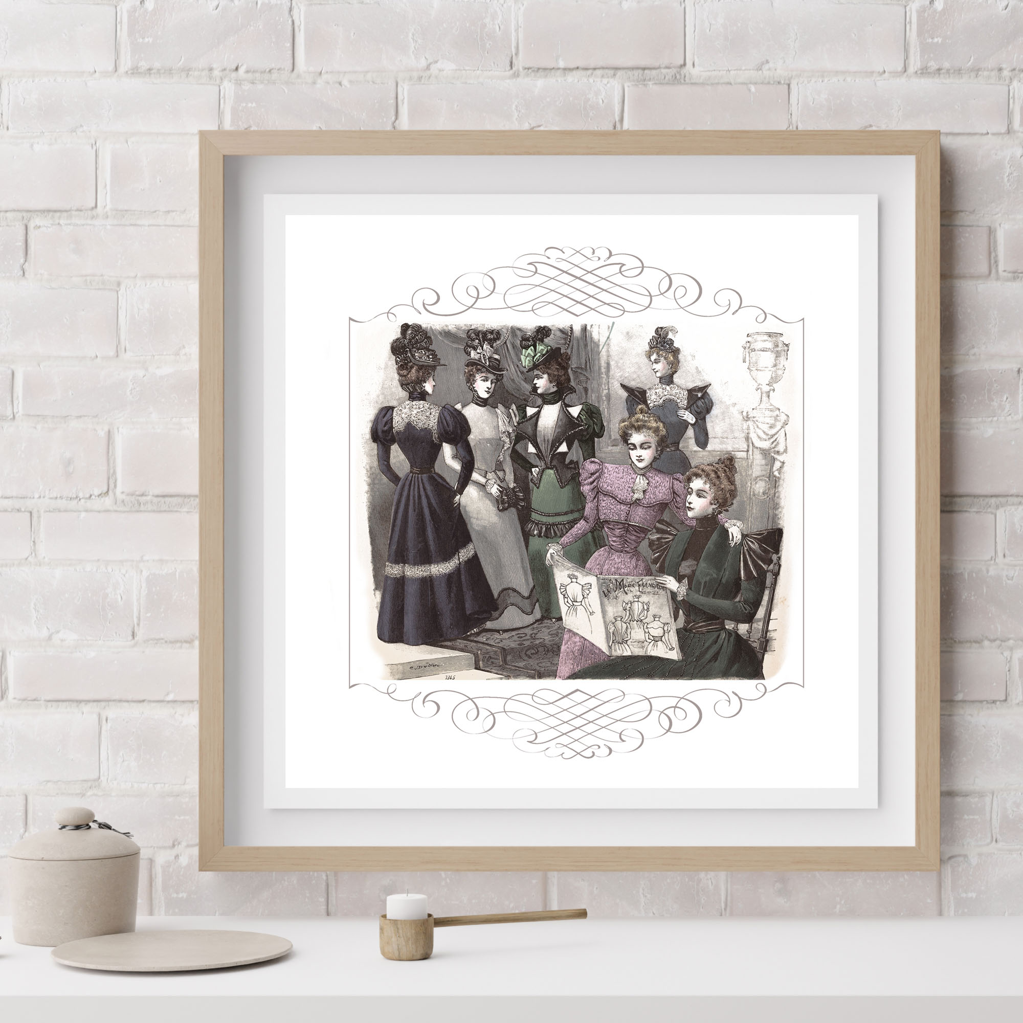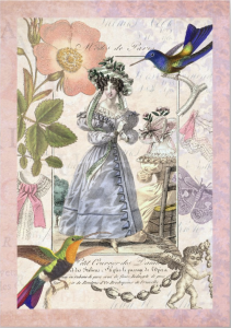In this wonderful vintage image adapted from Petit Echo de La Mode, a group of elegantly attired women gather in a salon, where they read up on the latest fashions – in Petit Echo de La Mode, of course.