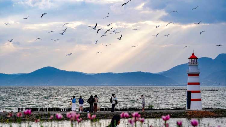 春日暖阳下,昆明滇池碧波荡漾,远山如黛,红嘴鸥翩跹起舞。春日暖阳下,昆明滇池碧波荡漾,远山如黛,红嘴鸥翩跹起舞。春日暖阳下,昆明滇池碧波荡漾,远山如黛,红嘴鸥翩跹起舞。