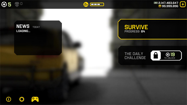 6、在前进过程中会有一些任务可以完成,完成任务后会获得点数,当玩家触碰障碍结束挑战是,这些点数可以解锁不同的武器和车辆。
