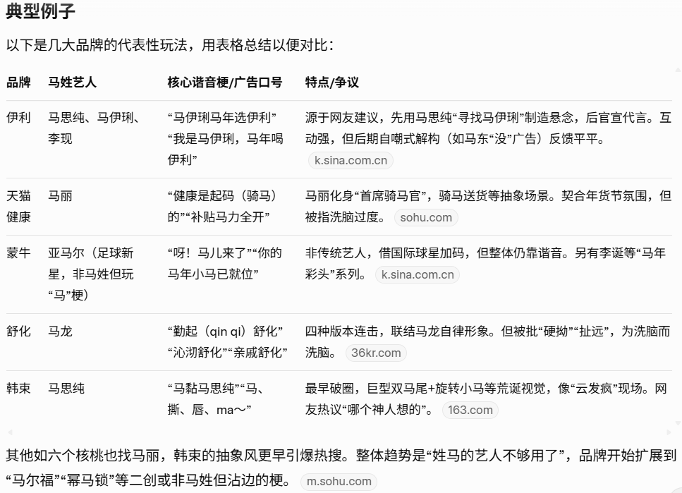 为什么会火?节点营销机遇:马年临近春节,品牌借生肖文化和明星效应快速吸睛。谐音梗简单易传播,自带病毒属性,能低成本撬动社交热度,用户容易二次创作(如对对联、鬼畜视频)。