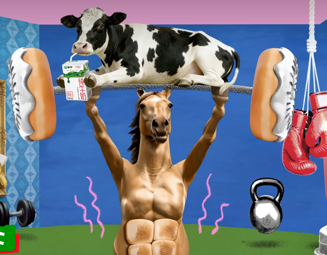 你见过八块腹肌的马举杠铃,杠铃上还躺着一只牛吗?现在你见到了。