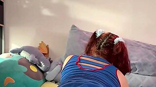 Breathtaking shemale teen strokes her dick while riding a dildo