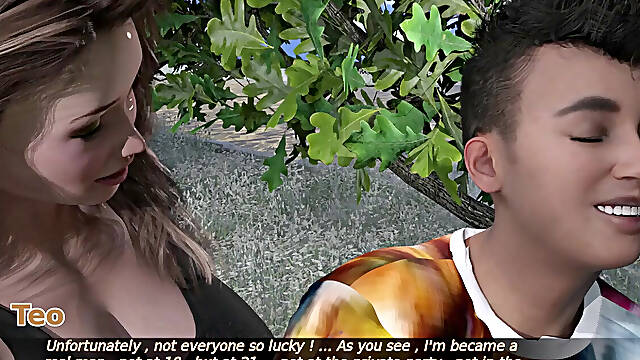 The buxom stepmother hosts a celebration for her stepson, resulting in her backside being covered in semen.